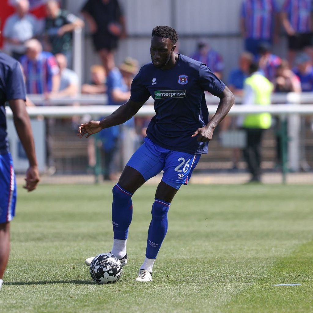 Bevis Mugabi during the warm session for Carlisle United FC photo courtesy