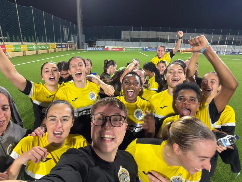 Kabene with her teammates celebrating after eliminating Birikirkara