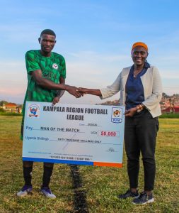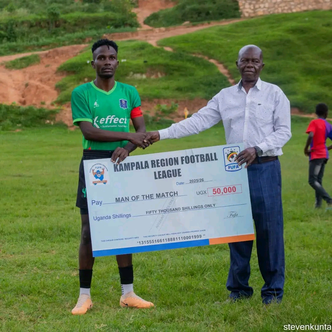 Receiving the man of the match Award Tumusiime Aaron captain Mutungo FC- Credit To Kunta .