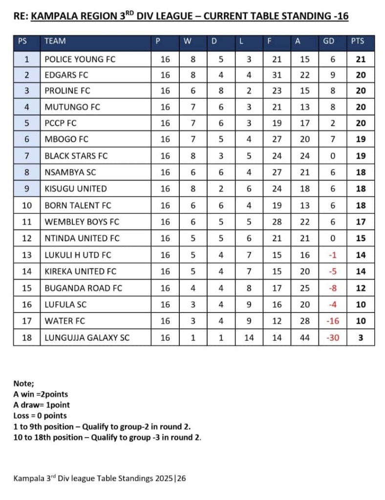 The Kampala Region League is heating up, with teams battling for top spots. Here’s a breakdown of Sunday’s matches:
