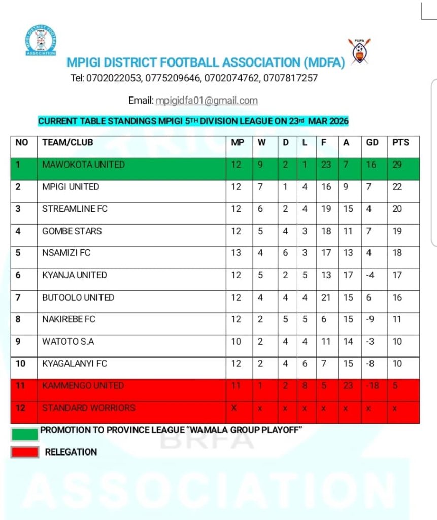 With nine match days to go, the battle for the top spot is far from over. Mawokota United’s lead’s solid, but teams like Streamline FC and Mpigi United are breathing down their necks. Meanwhile, Kammengo United’s struggles continue, sitting at the bottom of the table.