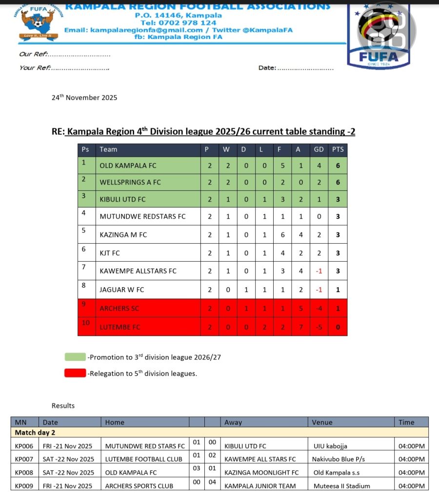 The Kampala Region 4th Division League match day two commenced with different matches, featuring thrilling encounters and unexpected results.